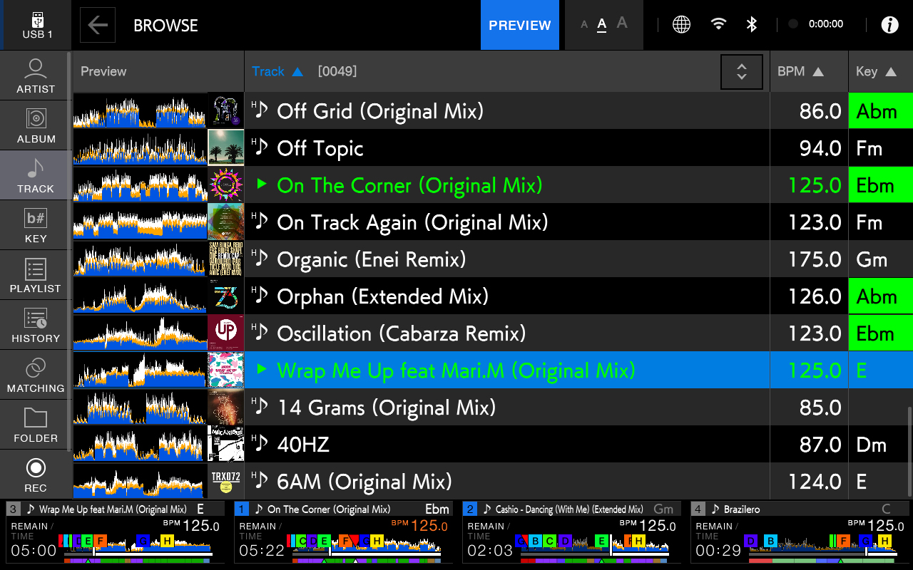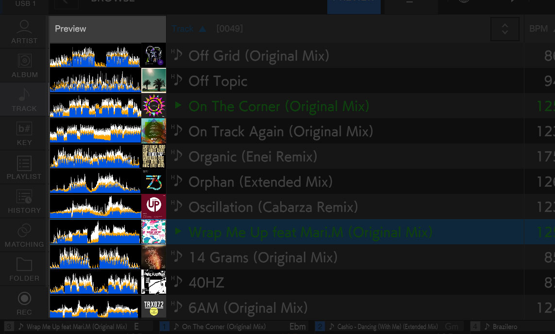 XDJ-AZ都通过StreamingDirectPlay功能与Apple Music兼容,可以直接访问最新的乐曲和播放列表。加载乐曲后,会自动进行BPM和网格分析,并利用波形显示来实现直观、准确的节拍匹配。