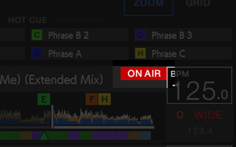 显示使用本机或rekordbox分析的乐曲整体波形、CUE点、LOOP、HOT CUE等。此外,使用TOUCH CUE即可在台面上试听正在播放乐曲的后续内容。